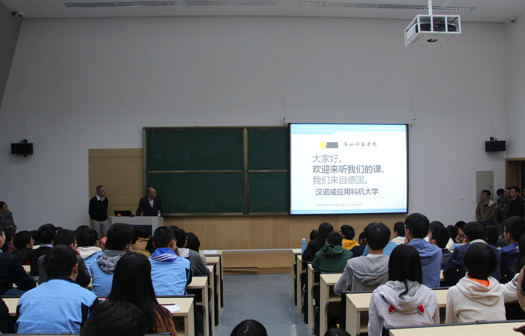 2014年11月10日,来自德国汉诺威应用科学大学的Greife与Steinke教授在我校安吉校区为麻豆传媒 以及中德学院2+3项目和德语专业的大一新生作了主题为德国的大学学习与生活的讲座。
