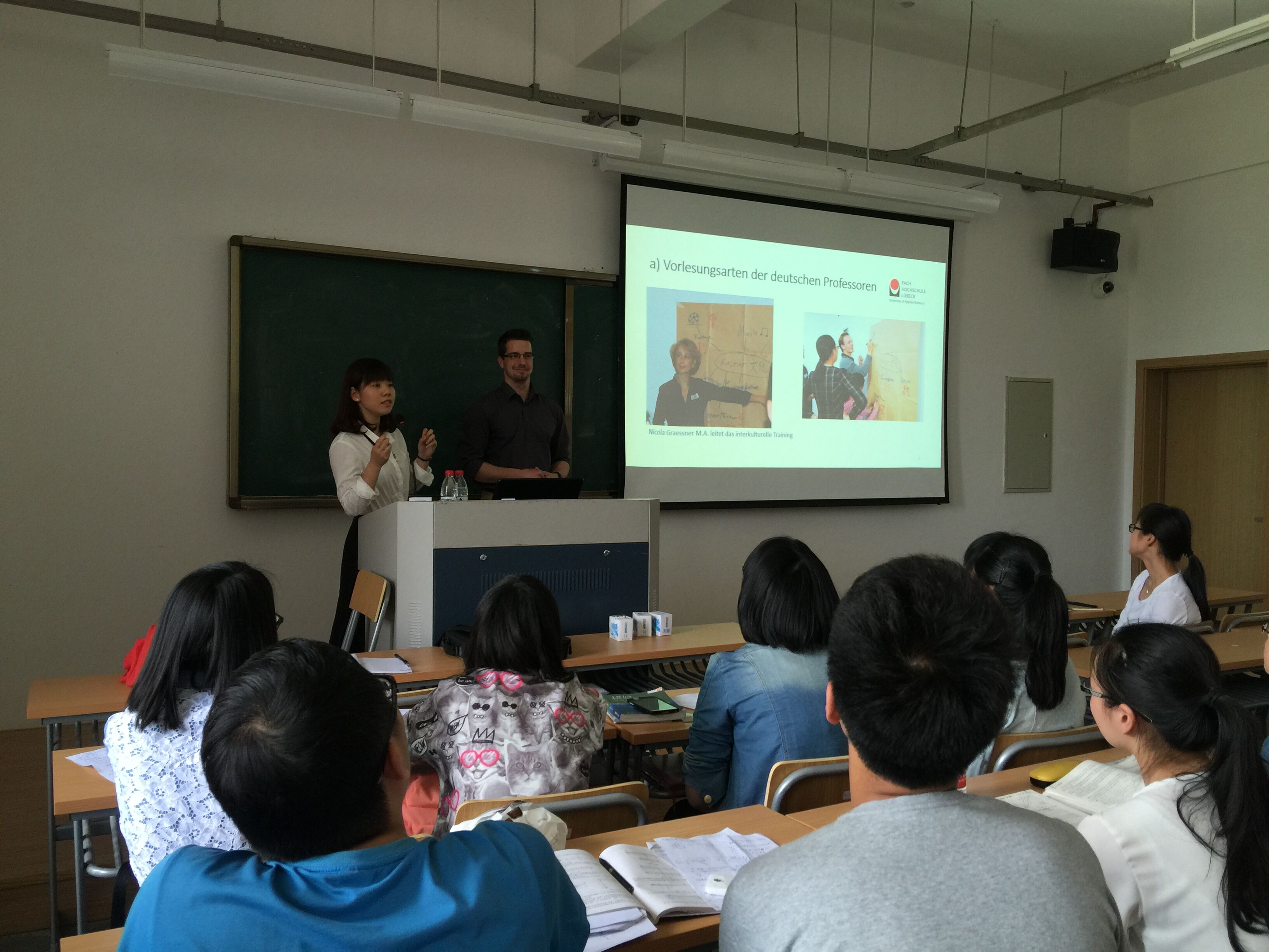 讲座内容主要分为三个部分。Osten先生首先为学生们介绍了德国教授的多种授课形式。通过图文并茂的讲解,希望大家能提前感受到德式课堂的精妙与难度,并以此引起大家对德语学习以及课堂学习方式转换的重视。其后,Osten先生为大家介绍了德国学生完成实习的一个流程。最后,他以吕贝克应用科技大学土木工程专业为例,向大家介绍了专业学生会的功能与优势,并建议在麻豆传媒 也成立一个能够为学生发声、建立师生间良好沟通桥梁的专业学生会组织。