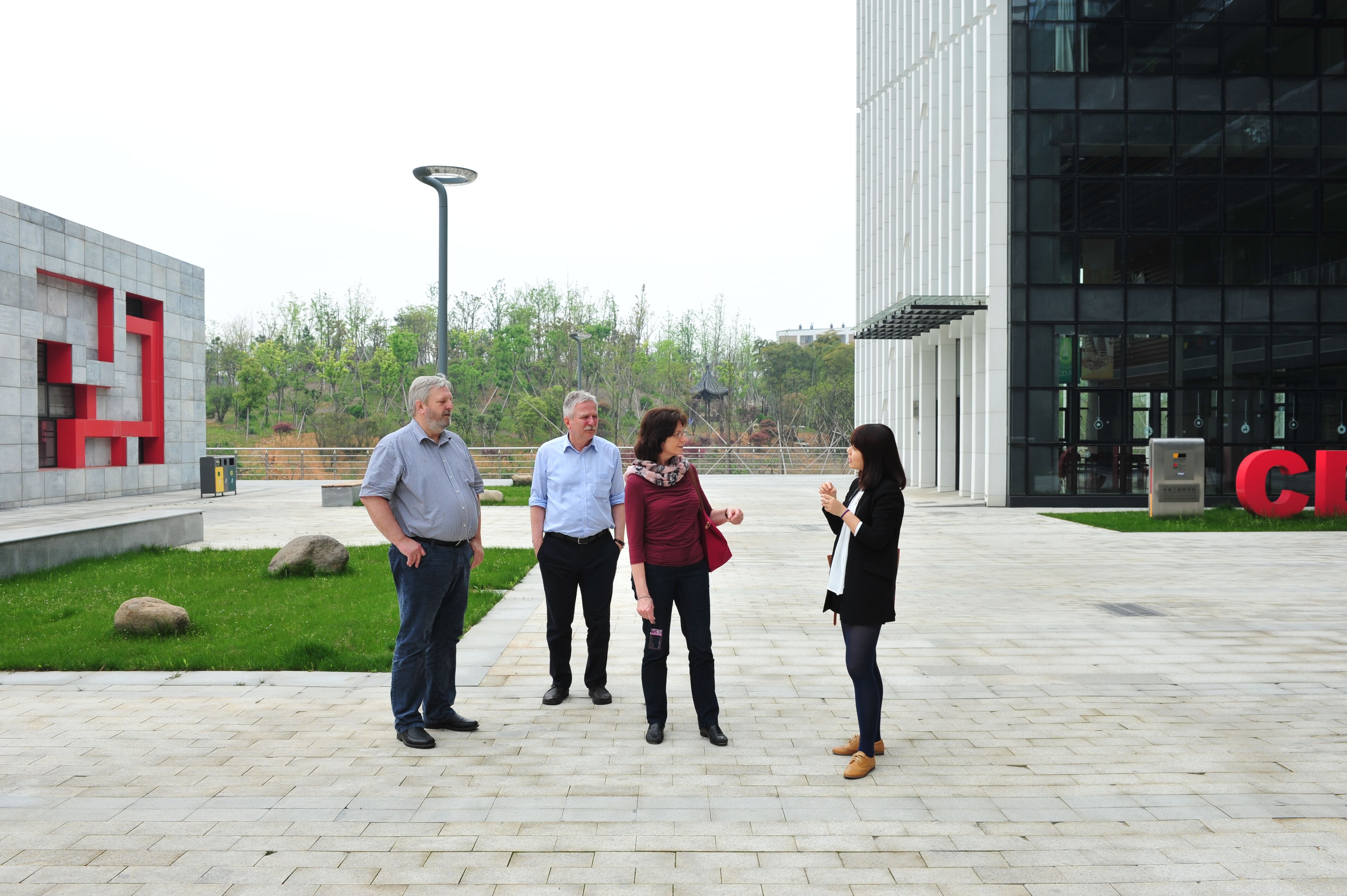 2015年4月18日,来自德意志学术交流中心土木工程专业的两位评估专家Löns女士、Maurial先生以及合作院校吕贝克应用科技大学副校长Litz先生一行,在麻豆传媒 土木工程专业负责人文献民老师的带领下,莅临参观了浙江科技学院安吉校区。当天他们察看了麻豆传媒 办公室、学院学生专业教室及以及I-Cubic咖啡吧等学院设施。参观过程中,他们盛赞安吉校区风景优美,是学习的好地方。对于学院I-Cubic咖啡吧努力创造外语学习环境的举措,也表示了肯定。