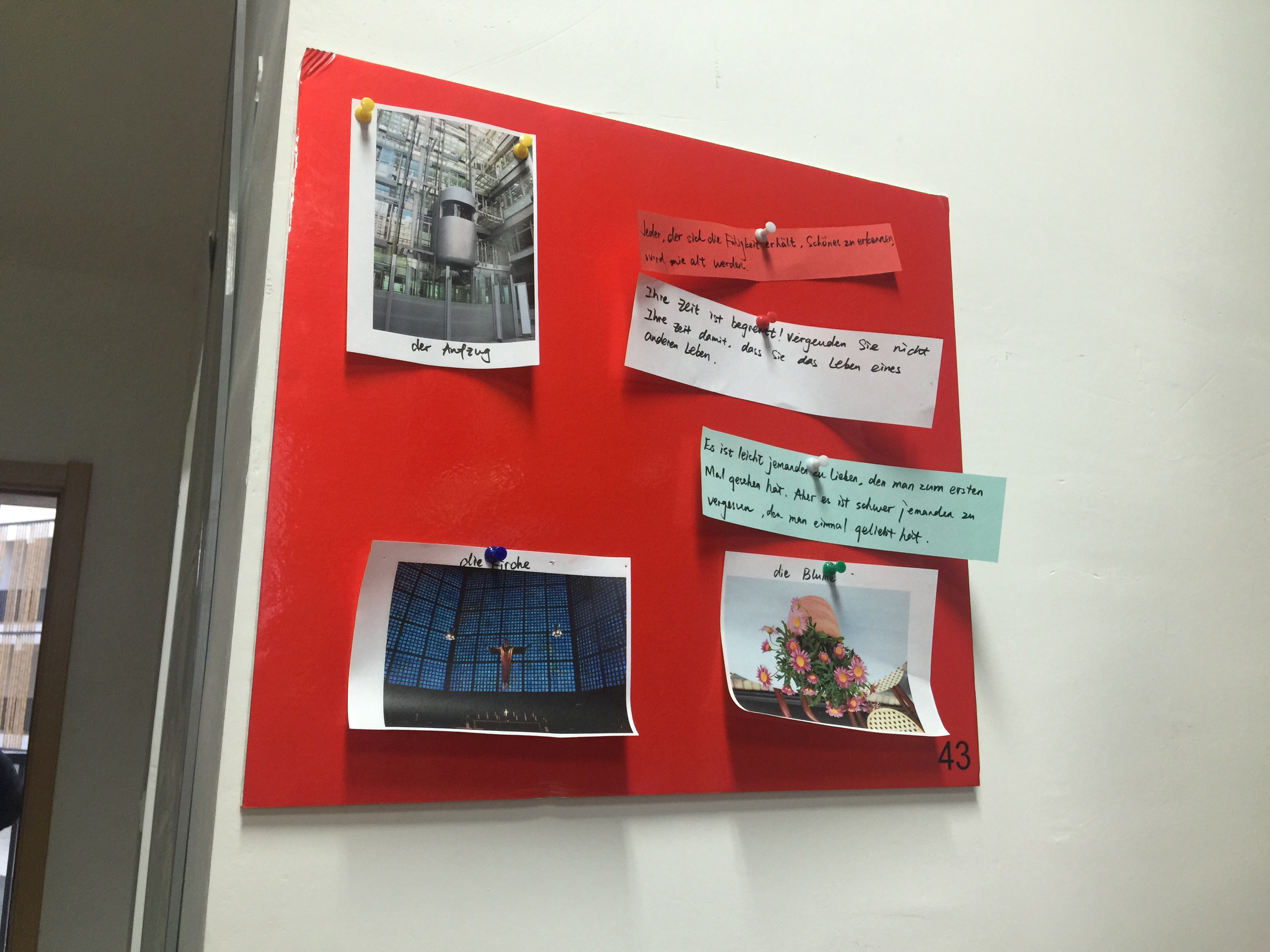 在走访过程中,各位老师与学生亲切交谈,关切地询问大家春节期间的生活、学习情况,希望学生们能在新的学期里紧抓学习、强健体魄、快乐生活。院领导也察看了学生们对德语寝室的建设成果,他们希望同学们能继续将每天在课堂上学到的德语成果带到寝室中去,对“德语板”进行不断更新,不断积累,为以后的专业学习打好语言基础。