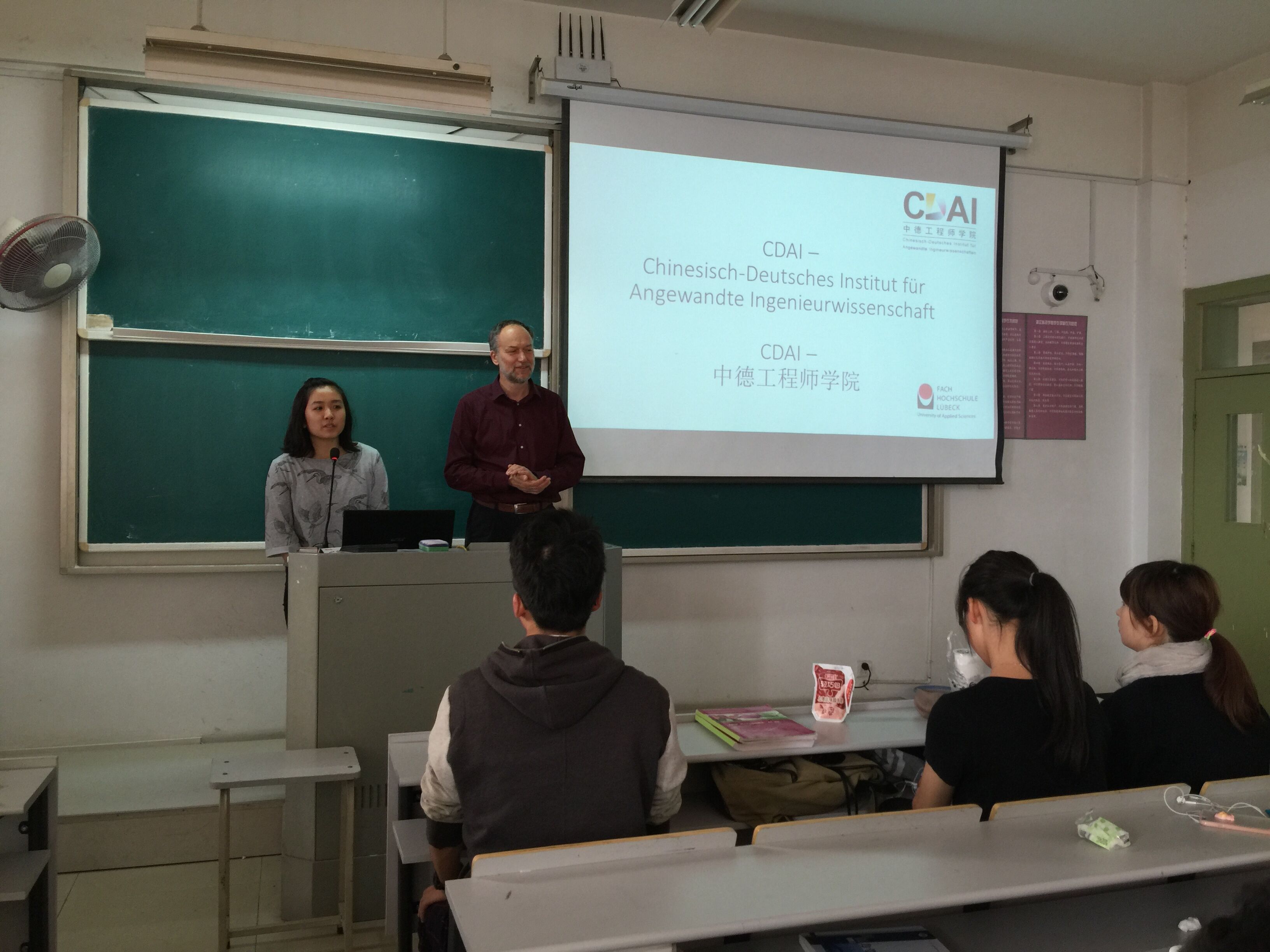 接下来,教授还为同学们讲解了赴吕贝克应用科技大学学习的选拔考试的有关内容。选拔考试内容是丰富多样的,激励着同学们向着成为综合性应用人才的目标前进。同时,教授还向我们介绍了吕贝克应用科技大学的教学内容与教学形式,让我们感受到了中德大学间的差异,让我们更加向往前往德国留学的生活。有趣的是,在总体水平评估考试中,将对学生的社交能力,处理问题能力与求学欲望列为一项重要的考察内容。作为一个新型人才,这三项能力显得格外重要。