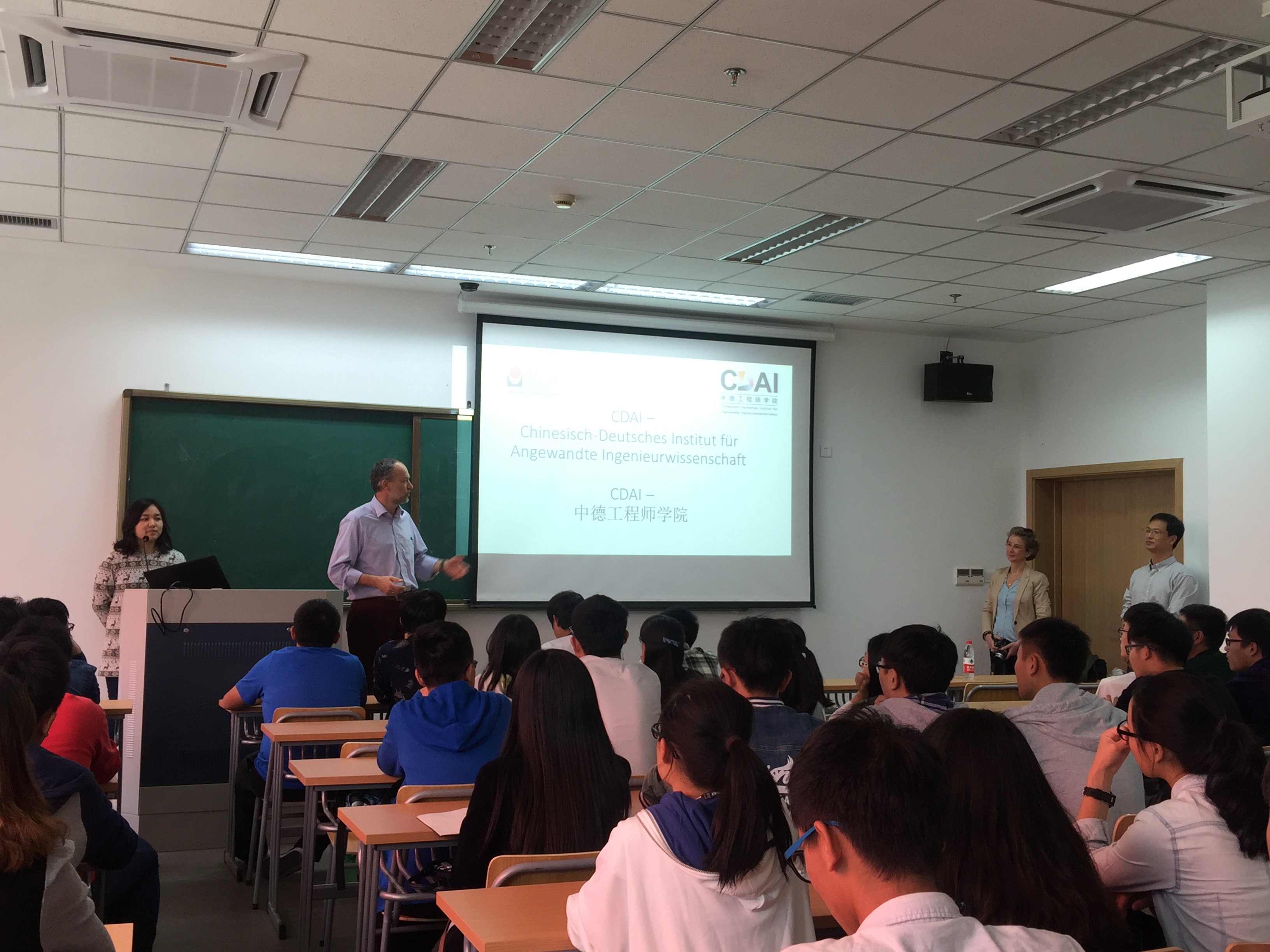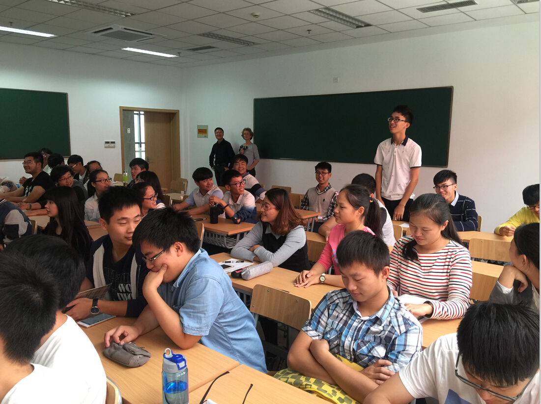 10月20日,来自德国合作院校吕贝克应用科技大学(FHL)的土木工程专业负责人Prof.Grottker和项目工程师Jan  Osten 先生、Nikola女士、邓鸿羽女士以及五位来自德国的交流生来到我校安吉校区,并与土木工程专业的60余名新生进行了见面交流。
