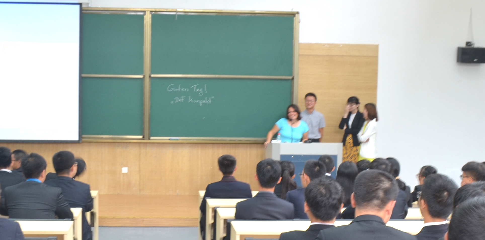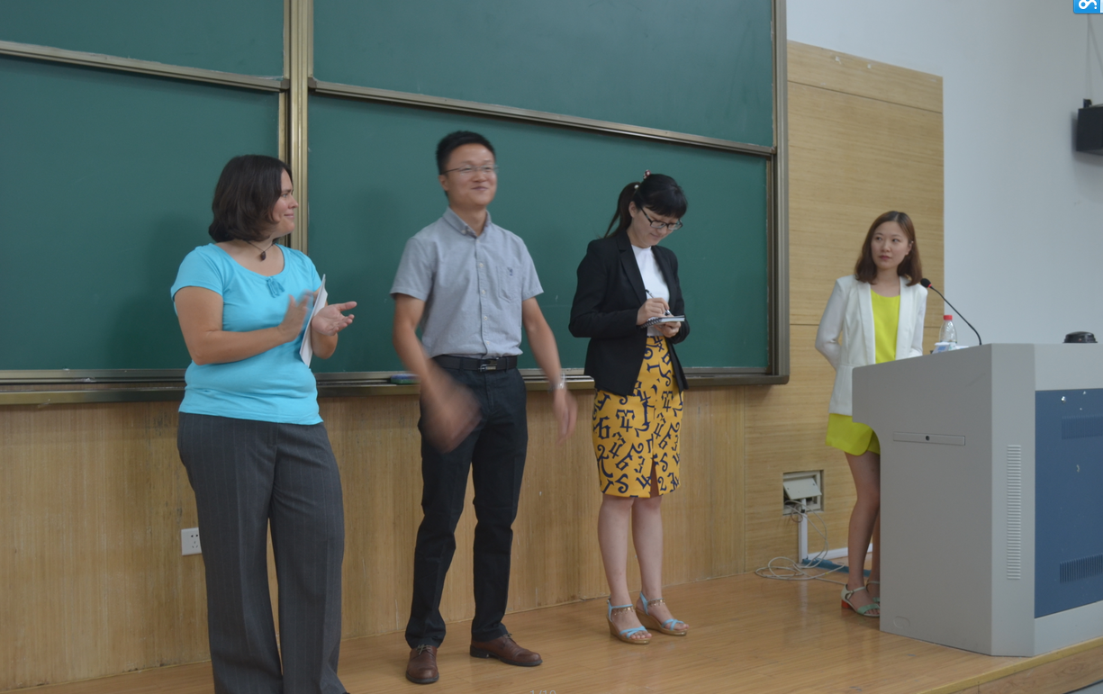 交流会上,主讲人Zenman女士首先带领着大家进入了一个活跃的气氛,在讲台上展示了一些她身边的德国生活和文化活动。Zeman女士介绍了她的故乡、家人和朋友,以及自己的爱好。她认为,语言是一种重要的交流工具,一定要认真学好。并做了关于德语学习的报告,督促新生养成良好的学习习惯。