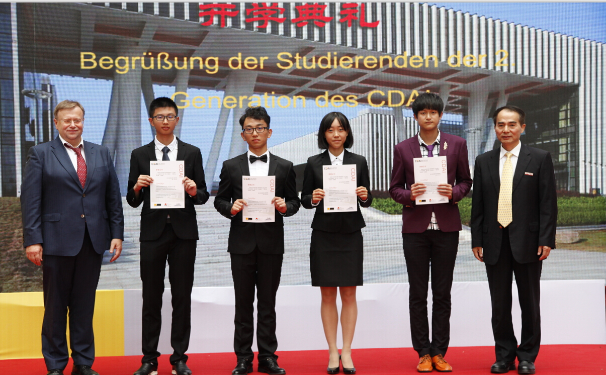 浙江科技学院副校长冯军宣读了新生奖学金获奖名单。出席典礼的中德双方高校领导和教授们为获奖同学颁发证书。