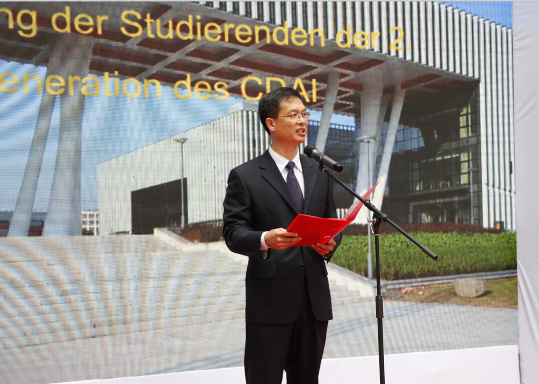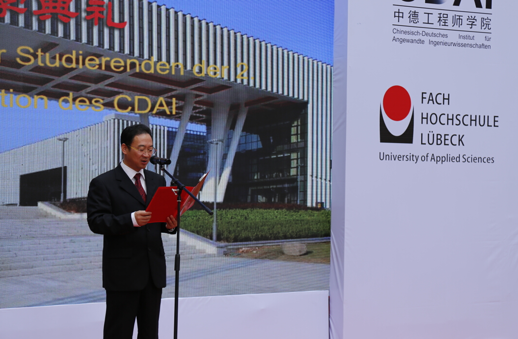 德国西海岸应用科技大学科尔施校长致辞,希望同学们在学习过程中注重自身实践能力的培养,并勉励大家学好德语,使自己具备突出的德语能力。