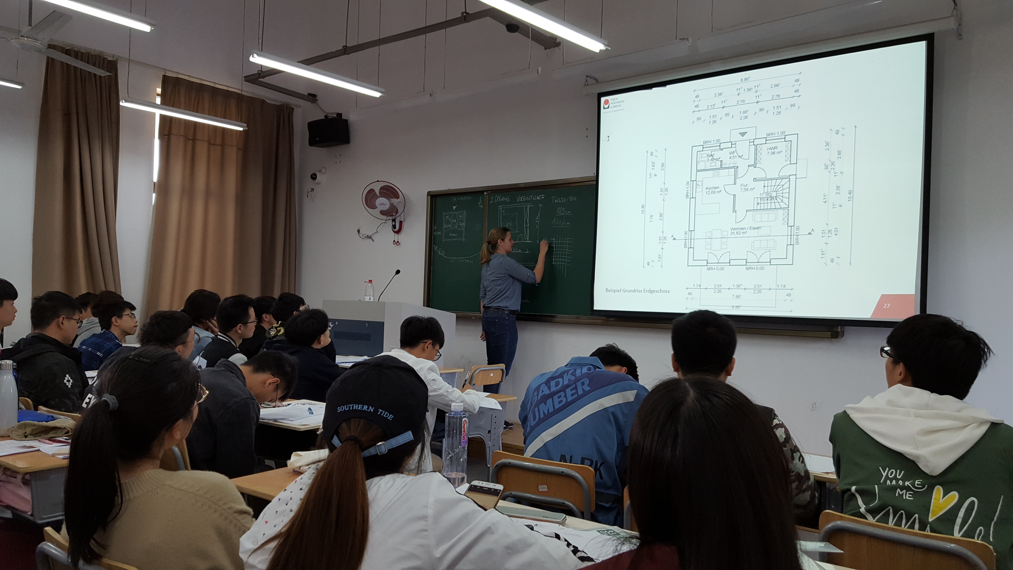 对于这种理论紧密结合实际的教学方式,学生们评价很高。学生们课后总结说,从绘制设计图纸的过程中不仅学习到了德国普通四口之家的住宅形式,同时也比较了中德两国的建筑制图表达方式的差异,这对于培养适合中德两国文化的土木工程师打下了坚实的基础。