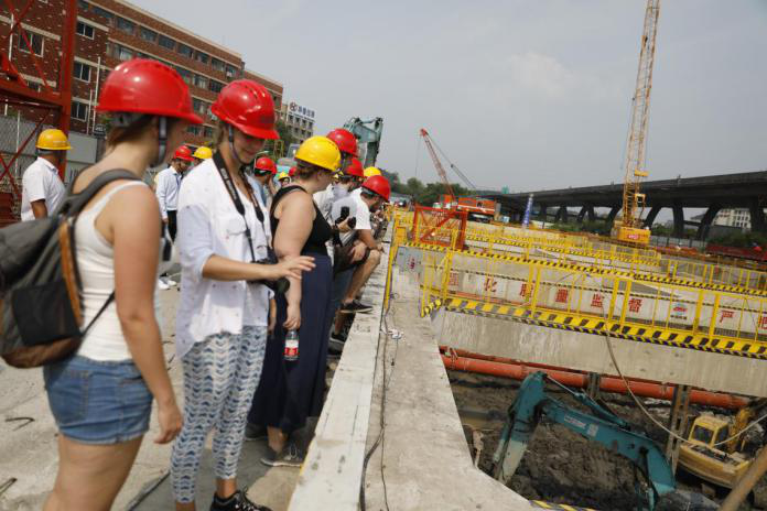 麻豆传媒 专门安排了土木工程专业教师带领德国夏令营团实地参观工程项目,其中包括杭州至临安城际铁路工程JLHL-5标段南湖新城站项目、安吉的碧桂园翰林府项目及春天尚居工程,部分CDAI学生也跟随其中。参观过程中,德国学生与教授对于在中国工地上看到的不同的施工工艺兴致浓厚,两国学生就地连墙的施工工艺、中德两国在钢筋混凝土框架结构中墙体材料的选用及保温隔热性能等方面展开了深入的探讨,气氛融洽。德国夏令营团还参观了杭州与安吉校区,展示了教室、食堂、实验室与咖啡吧等场所,对于国内学生的生活与学习环境有了基本了解,部分学生表示有兴趣来麻豆传媒 参加交换生项目的学习。