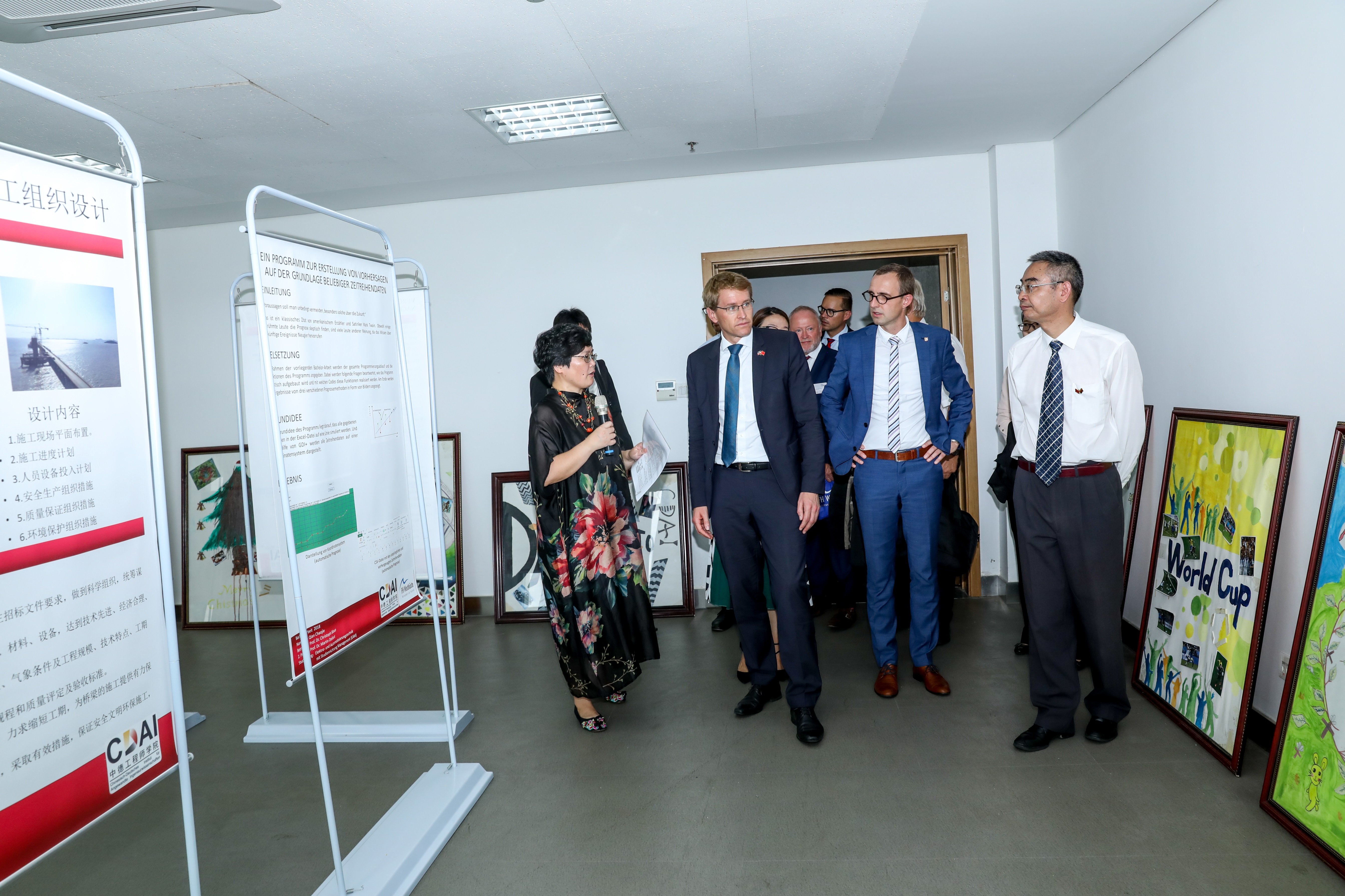 来访期间,州长参观了学院的咖啡吧、机器人展示和教学成果展,并栽种象征着中德两国友谊之树。