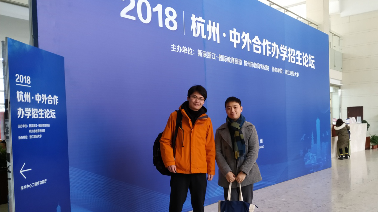 杭州市教育考试院和新浪浙江-国际教育频道于2018年12月21日在浙江财经大学共同主办“2018︱杭州·中外合作办学招生论坛”,论坛邀请了省内外知名高校中外合作办学机构及省内几十余所拥有国际化背景的高中。校招就处处长杨志祥、学院副书记李成炜及辅导员沈阳涛应邀参加了此次论坛。