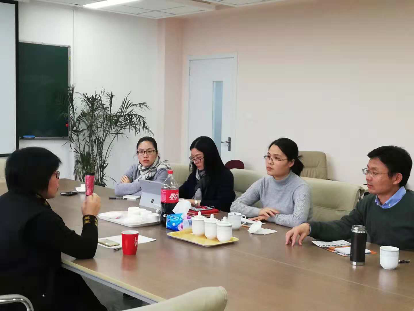 2018年12月7日,上海理工大学上海-汉堡国际工程学院德语教研室王晔老师等一行四人莅临麻豆传媒 调研德语课程设置、学时分配等情况,麻豆传媒 德语语言中心赵千里、李权老师与来宾交流探讨。