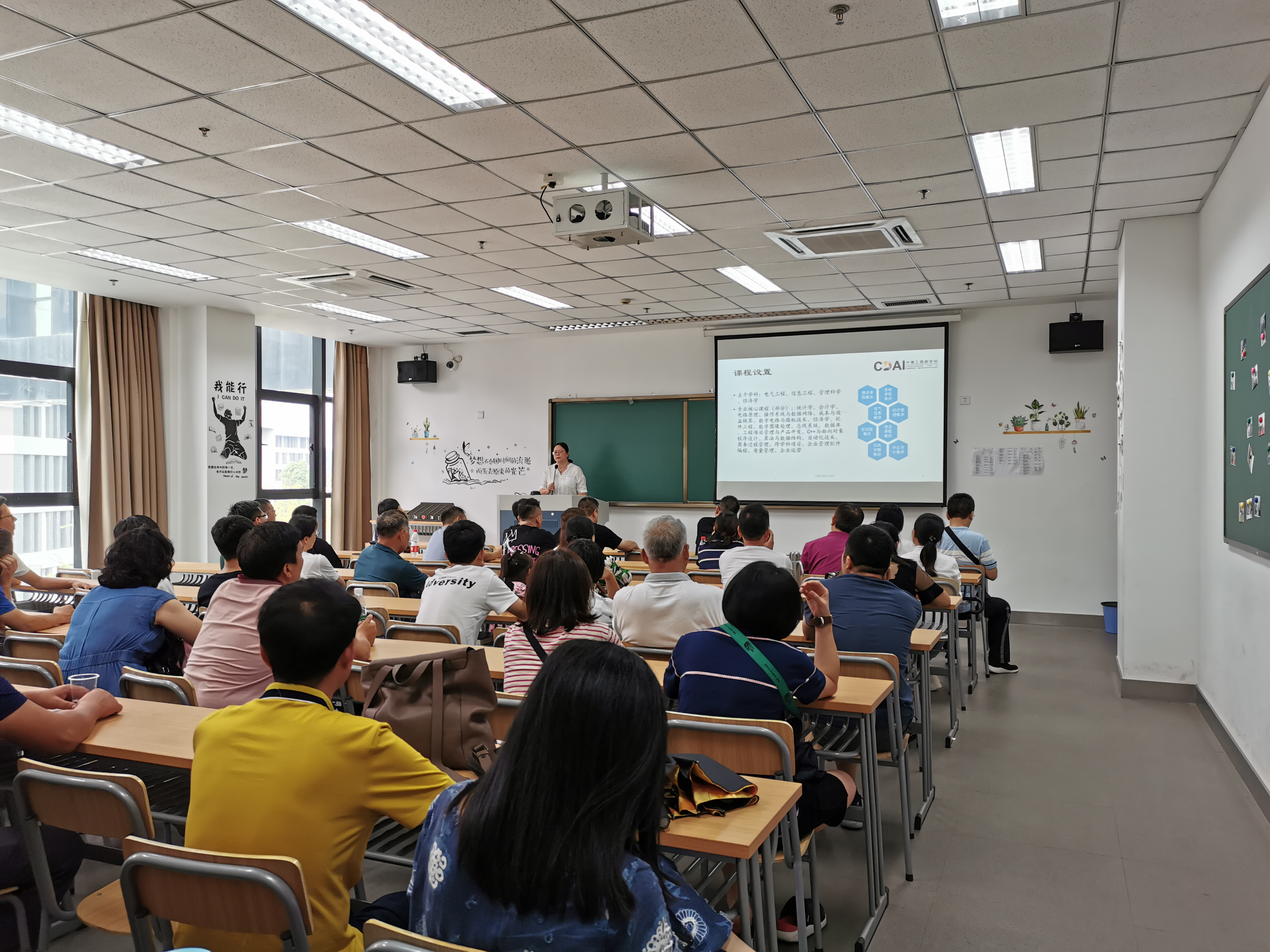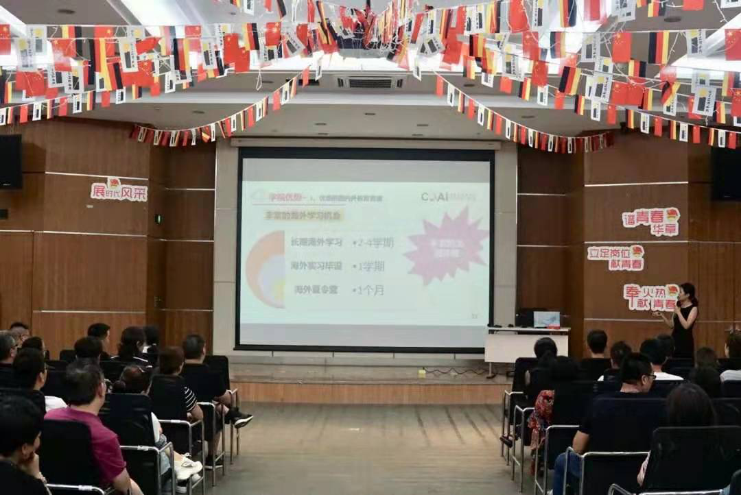 随后,在中德楼教室里,张云莲老师和范佳静老师分别向土木专业和电气专业的同学们以及家长们介绍了课程设置、师资力量、合作院校、毕业实习以及就业前景等方面内容,突出了学院的国际化办学特色。两位老师耐心热情地为同学和家长答疑解惑,家长们也对学院有了初步了解,并对学院优质的教学模式,丰富的教学资源以及规范性、示范性、国际性为一体的合作给予了高度认可。