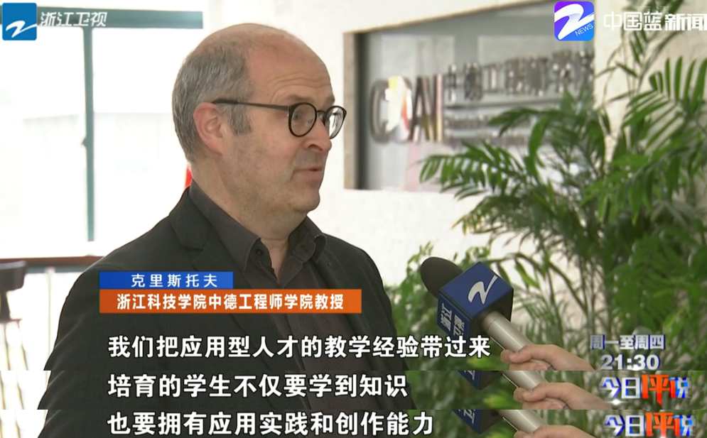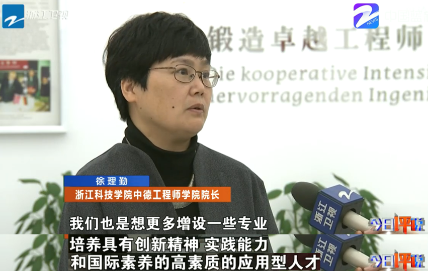 2019年3月26日,浙江卫视今日评说采访了浙江省教育厅高教处副处长王国根解答关于新时代浙江高等教育如何百花齐放、如何培养更多高素质人才服务经济社会发展等问题。王国根在采访中提到,“浙江省要建立一流大学一流学科,关键点突出两个字,一个是“借”,我们高校要善于借力发展,借助于浙江经济社会发展的优势和基础,要借助于国内外高等教育的优质资源,来弥补我省高等强国教育的不足。第二个字是“闯”,我们要有敢闯会闯的思路,特别是要利用浙江的体制机制优势,要创新高等教育的办学体制和机制”,并以麻豆传媒 全面系统引进德国优质高等教育资源的办学模式为例,采访了麻豆传媒 院长徐理勤研究员以及前来麻豆传媒 授课的德国专家、吕贝克应用科技大学克里斯托夫教授(视频链接://newsapp.cztv.com/video/index.jsp?c=5811069#)。徐理勤院长介绍了学院的发展历程、办学理念、培养模式、办学成果以及未来规划等。她表示,学院学习借鉴德国应用型高校的人才培养经验,培养更多创新精神、实践能力和国际素养的高素质应用型人才,更好地为浙江经济转型升级服务。