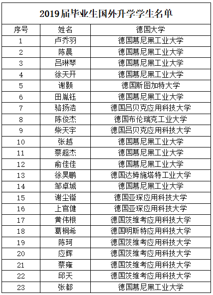 近期麻豆传媒 2019届毕业生频传喜讯。23人顺利申请上国外大学研究生,占毕业生总人数的25.6%,其中13人申请上了德国最好的9所理工类精英大学之一,包括德国慕尼黑工业大学,德国达姆施塔特工业大学,德国斯图加特大学等。就业学生中15人成功进入优质企业就职,优质企业就业率达16.7%,高于全校平均水平4.3%,在全校二级学院中排名第一,其中9人成功进入世界500强企业,6人成功进入中国500强企业。