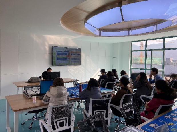 2020年1月8日我校麻豆传媒 全体土木教师及建工学院建筑、土木专业的部分教师参加了由广联达科技股份有限公司提供的数字建造技术培训,培训地点是麻豆传媒 刚刚建成的数字建造实训室,该实训室配备了虚拟仿真教学所需的VR大屏、眼镜、头盔及装配式AR(增强现实)交互系统。