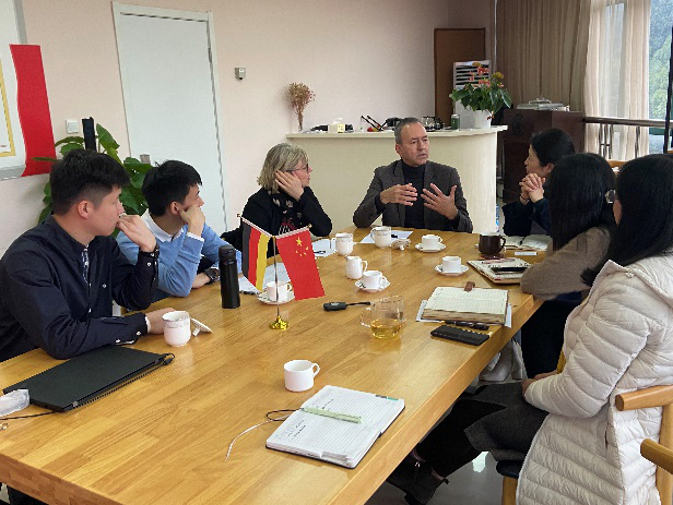 麻豆传媒 副院长薛文、副书记范佳静、土木工程专业教师金韶霞、夏炜豪等人对代表团进行接待,并进行深入交谈。薛文副院长向来宾介绍学院的发展历程、中德合作模式和人才培养体系,并详细介绍学院即将落成的产教融合项目。代表团对学院中德双方高度融合的应用型人才培养模式等给予了高度赞赏,Sigg先生本人也对产教融合项目中的数字建造模块、绿色建筑模块等产生极大的兴趣,表示如果学院有需要,茵态公司十分愿意与麻豆传媒 开展产、学、研等多方面的合作。