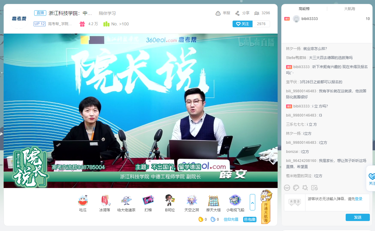 首先,薛院长介绍了学校的中德合作历史、学院的成立背景及概况,国际化、应用型、创新性的人才培养定位给考生留下了深刻的印象。紧接着薛院长详细地介绍了学院的“德国模式,中国特色”的培养方案,重点阐释了特色鲜明的德式教育,使考生对学院专业的课程设置、培养方式、学习环境等有了清晰的了解。毕业生的毕业去向同样也是考生重点关注的内容,薛院长罗列了学院历届毕业生的情况,让考生对该专业未来的毕业去向有了具体的方向。最后,在与主持人的互动环节中,薛院长还进一步分享了一些对于考生来说比较关键的信息,包括学院两个专业具体的发展前景、德国应用科技大学和综合型大学的区别以及来学院学习所要面临的困难和挑战,并希望愿付出、肯努力、勤思考的考生们加入麻豆传媒 这个大家庭。考生和家长们纷纷在评论区内留言,有表示对学院产生了浓厚的兴趣,希望报考三位一体,也有希望了解更多关于学院相关的信息,包括专业学费、就业率、高年级出国选拔等问题,薛院长也一一作了解答。