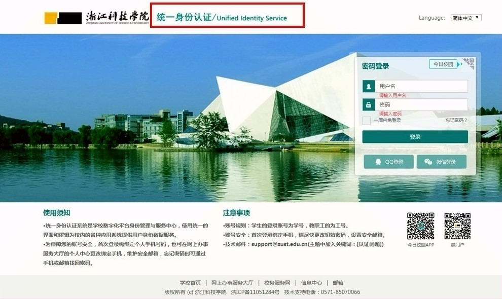 提交论文前,请务必通过浙江科技学院校园网“统一身份认证”。