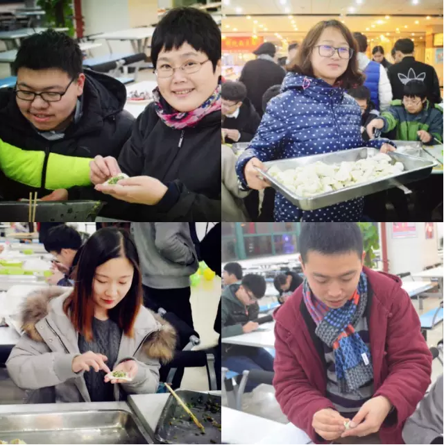全体师生一起包饺子,欣赏节目,游戏互动,玩得不亦乐乎。