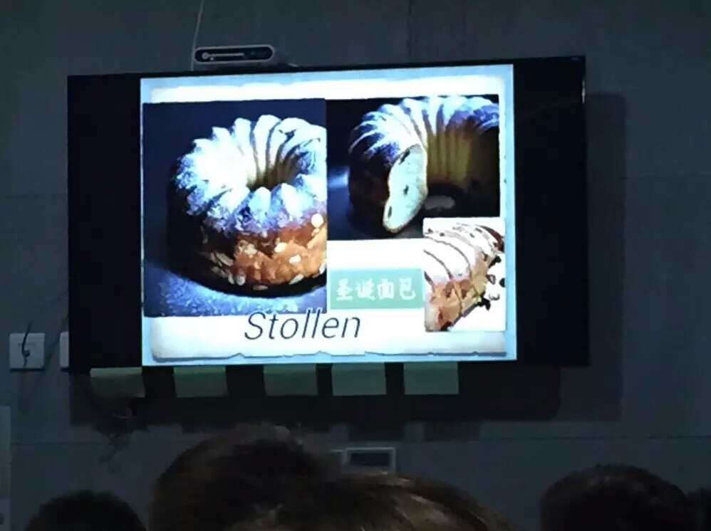 18:30铃声响起,我们的PARTY准时开始!土木一班的同学们带领我们在德国啤酒的世界里畅游,只是现实是骨感的,大家只好以咖啡代啤酒,过过干瘾;紧接着的是电气二班的同学们从女生的视角介绍了德国的餐厅文化、著名的黑森林蛋糕等,用心的海报俏皮可爱又生动形象;土木二班和电气一班的男生同学代表分别向大家讲解德国香肠文化和他们眼中的黑森林蛋糕,多方面地向我们展示了德国美食的魅力,这让在场的各位切身体验了一把“可望而不可及”的无奈。