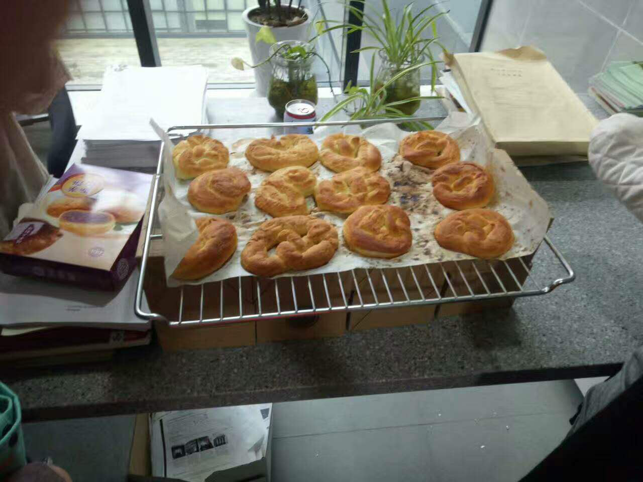 5月4日正值五四青年节,下午13:30时麻豆传媒 同学们在中德E楼咖啡吧动手参加了碱水面包的制作。