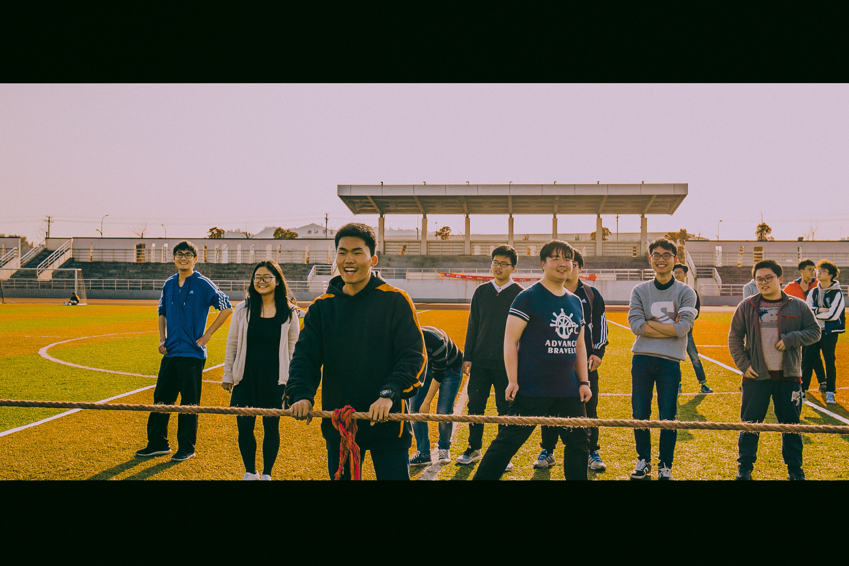 哪怕双手被绳子磨掉一层皮肉,哪怕最后以卧地的姿态结束比赛,哪怕喊口号喊破音,笑容仍然洋溢在每一个人的脸上。尤其是当大家松手,绳子落地的那一刻,这时,重要的,仿佛已经不是输赢,而是共同奋斗的记忆,是绝对真挚的付出,是光辉灿烂的岁月,是空气中激荡着的我们露珠般闪烁的笑声。