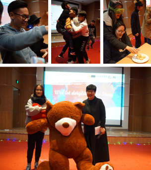 16:30中德E楼咖啡吧包饺子现场,大家热情高涨,跃跃欲试。在欢声笑语中,热腾腾的饺子出炉了,脸上洋溢着劳动的喜悦。随即,温馨而热闹的元旦晚会在B4报告厅拉开帷幕。或是炸裂全场的集体舞蹈,或是深情款款的吉他弹唱,或是爆笑演绎的安全小品,或是震动人心的全场合唱,无不包含着CDAI学子们的多才多艺和对学院的深深祝福。全体同学在礼物交换中感受来自他人的温暖,在游戏环节尽情投入乐在其中,在学长学姐感悟中规划新一年的学习生活。学院直属党支部书记、院长徐理勤老师与直属党支部副书记、学生工作负责人李成炜老师发表新年致辞,回顾2018年,为大家送上新年的祝福,鼓励大家不断前进。
