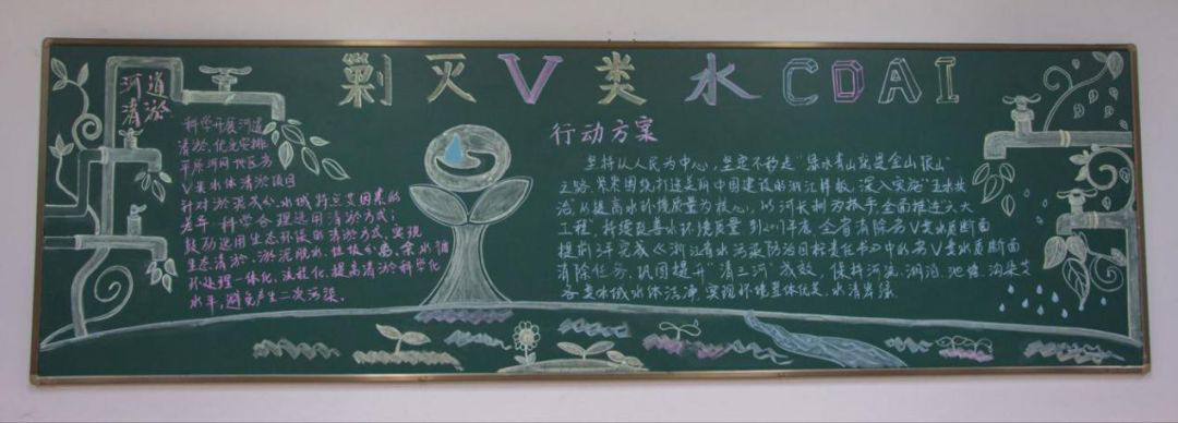 在学院团委组织下,各班的宣传委员和文体委员带领同学们共同参与了有关“剿灭劣V类水”的黑板报的宣传,各班的黑板报小组成员在课余时间共同出谋划策,一起完成了色彩鲜艳,紧扣主题又独具特色的黑板报。在学院微信公众号的评比中,经过一周的激烈角逐,土木二班最终荣获“优秀黑板报”奖项。