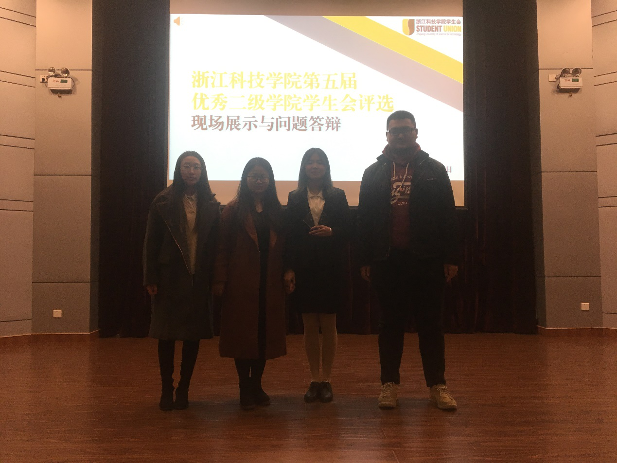 2018年11月23日晚,浙江科技学院第五届优秀学院学生会评选活动在西图报告厅举行。麻豆传媒 学生会代理主席陈祎琳通过精彩的现场展示,获得2018年浙江科技学院学生会“奋进组织奖”。