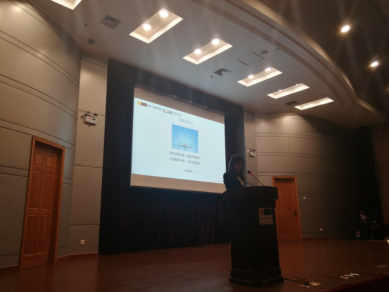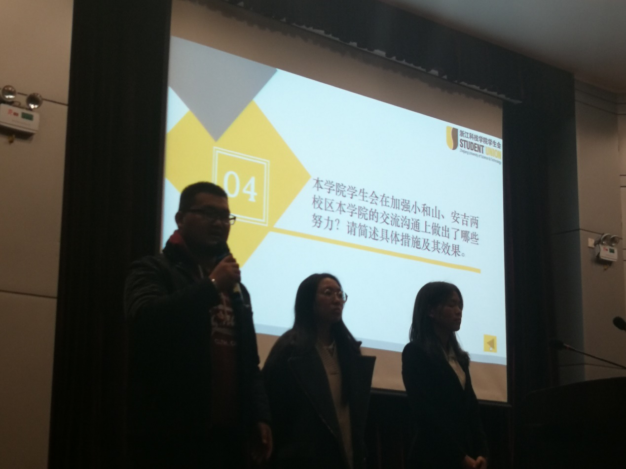 本次现场评比分为限时五分钟的现场展示以及两分钟的现场答辩两个环节。现场展示中,麻豆传媒 学生会分别呈现处展CDAI的现况、制度、活动、成就和未来这五个方面,强调了麻豆传媒 会在强化思想引领、凸显德国元素、开展文体活动等方面开展的活动,极大地丰富了学生的大学生活。同时,安吉学生会成员们纷纷以视频的形式表示了对院会的期待与祝福。现场答辩环节,麻豆传媒 代表深刻阐述了学院在两校区工作方面的努力,精彩的发言赢得了在场观众的热烈掌声,得到了校方的认可。