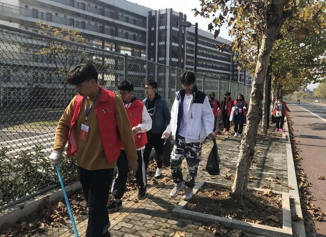 天公作美,阳光明媚。志愿者们身穿红色小马甲,携带清扫工具,在安吉校区南门集合完毕。他们或在草丛中寻找烟头,或在马路便清理落叶,经过一个多小时的紧张工作,志愿者们环校园外一周,一次次弯腰虽然汗水浸湿了衣背,但收纳筐收获颇丰,心里更是有满满的责任。