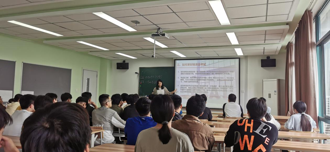两位老师从课堂注意事项、如何更好地理解课堂内容及如何更好地准备考试等方面展开,并结合各自专业特点和德方授课特点为同学们进行细心的讲解。他们强调要尊重中德双方的文化差异,鼓励同学们积极调整学习状态、迎难而上,化被动为主动,经过长期的坚持肯定会有收获。同时两位老师建议同学们增强与德方教师、学长学姐沟通,获取咨询并借鉴好的学习方法。