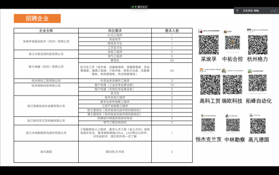 为切实做好麻豆传媒 2023届毕业生实习就业双选工作,疫情之下,学院积极引进优秀企业开展在线专场宣讲及云端招聘。此次参加企业包括格力电器(杭州)有限公司、采埃孚电驱动技术(杭州)有限公司、杭州高科工贸有限公司等多家优质企业。学院19级学生及部分有规划意识的20级学生积极参会。此次招聘宣讲会还吸引了学校电气、信息、经管等兄弟学院的学生参加。
