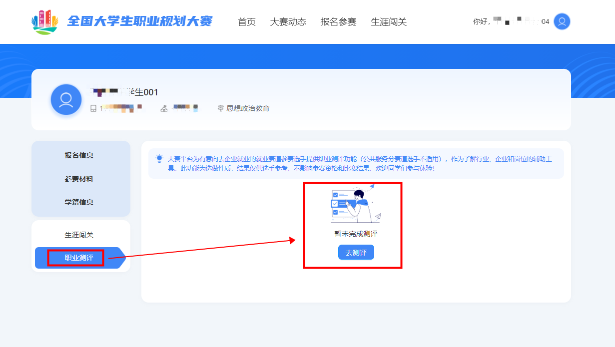 (2)职业适配度测评:就业赛道选手选做。