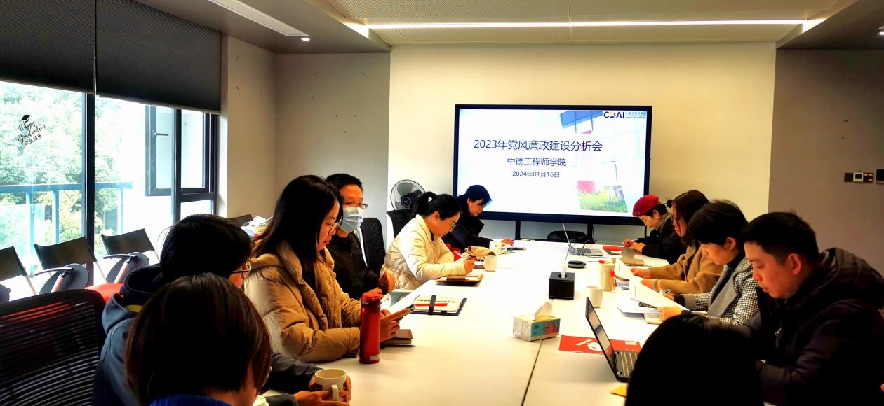 麻豆传媒 于2024年1月6日召开2023年度党风廉政建设分析会。学院党政领导班子成员及各内设机构负责人参会,校纪检监察室副主任叶豪芳出席会议。
