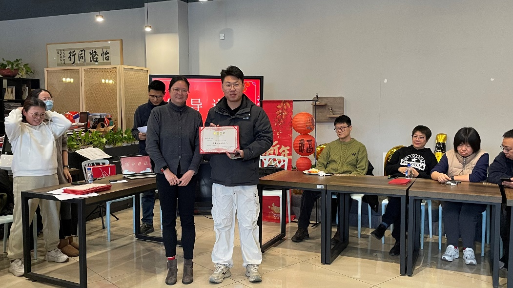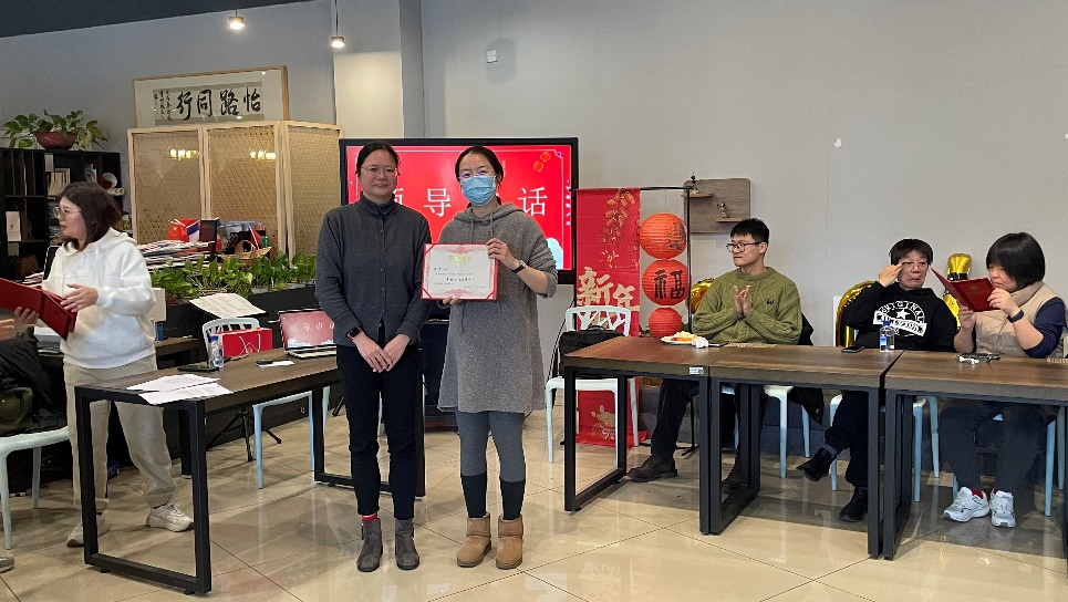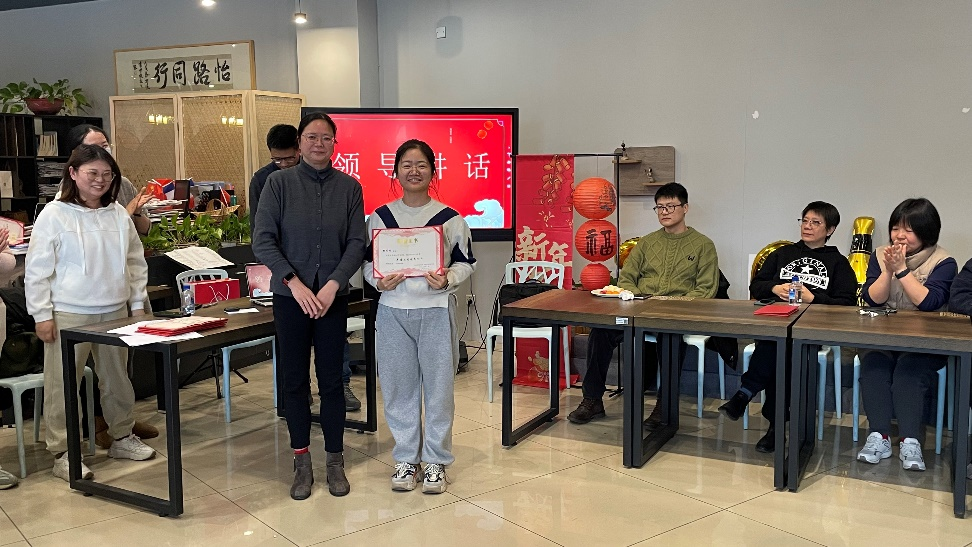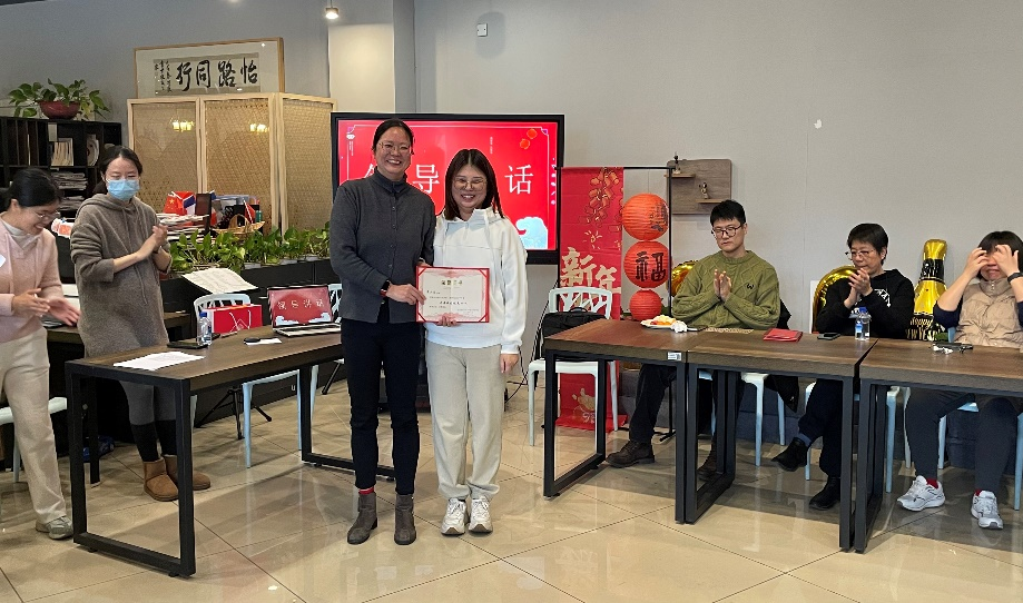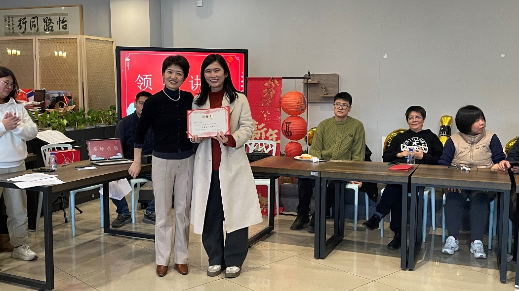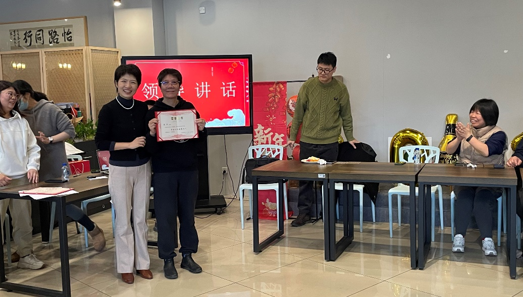 活动伊始,学院院长薛文老师发表了热情洋溢的新年致辞,对全体教职工们的辛勤付出表示衷心感谢,激励大家继续携手共进,并和范佳静书记为所有获得优秀工作个人称号的老师们颁发荣誉证书。