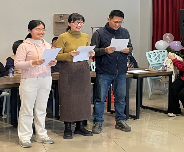随后,活动进入欢乐的游戏和文艺表演环节。教职工们积极投入互动游戏,通过团队协作完成各种有趣的挑战,赢得了精美的小礼品。表演环节中老师们精彩的合唱歌曲表演更是将现场气氛推向高潮。
